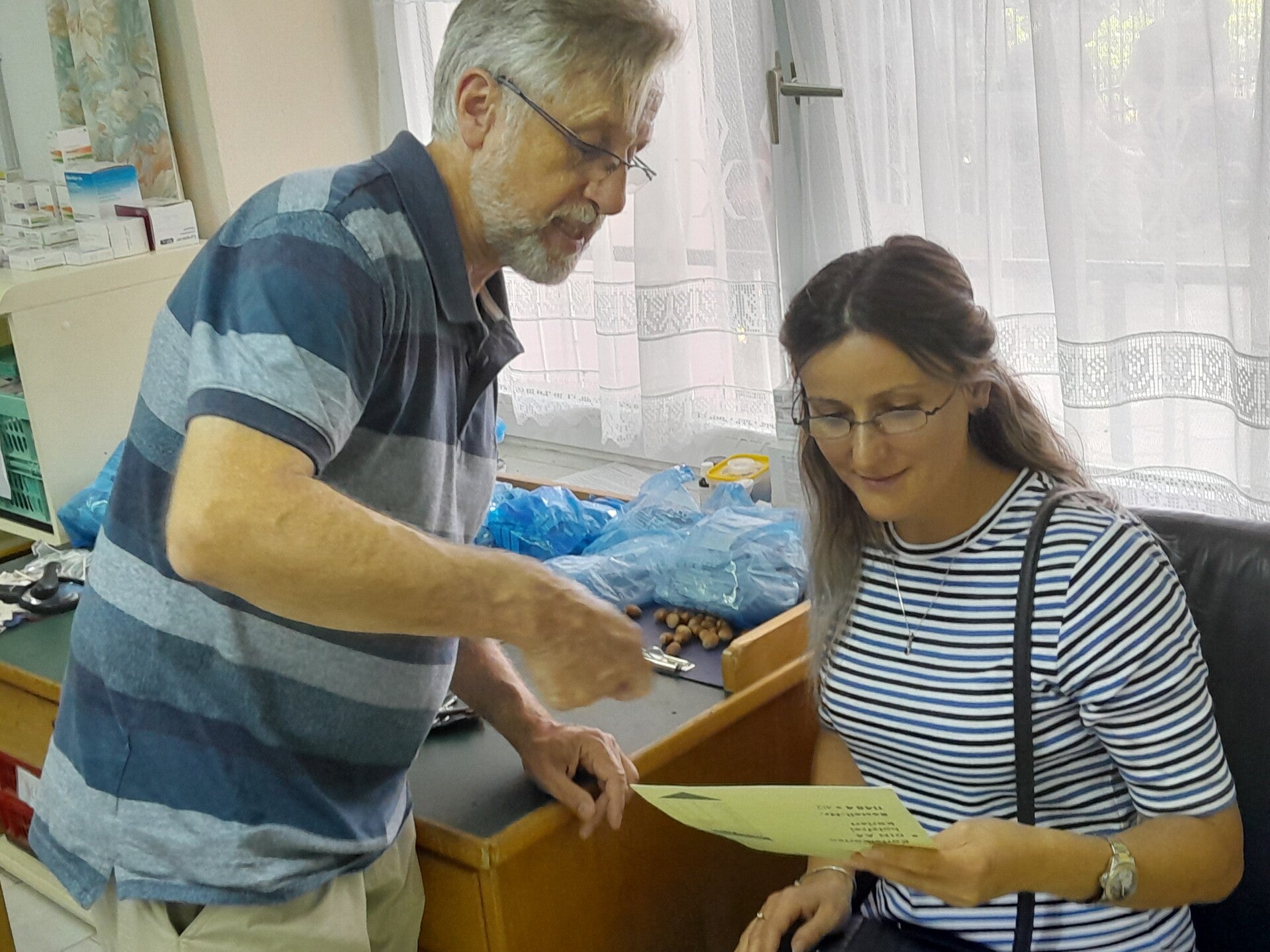 Angelos hat Gefallen an dieser Tätigkeit gefunden und von Ruth so viel gelernt, daß er nun die notwendigen Vermessungen mit Gerald selbständig durchführen kann. Eine große Errungenschaft für unsere arme Region, da viele Menschen unserer Region arm sind und sich Brillen oft nicht leisten können. Auch ist eine Fahrt nach Shkodër für viele eine mühsame Tagesreise und der Besuch eines Augenarztes mit für sie hohen Kosten verbunden.